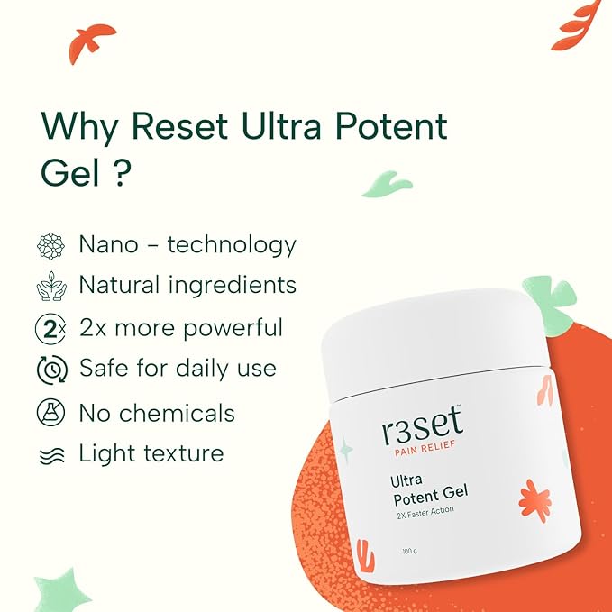 R3SET Ultra Potent Pain Relief Gel | 100% Natural Ingredients for Muscle, Joint, Back, Neck & Knee Pain | 2X Faster Action, Light Texture, No Side Effects, Safe for Daily Use - 100g